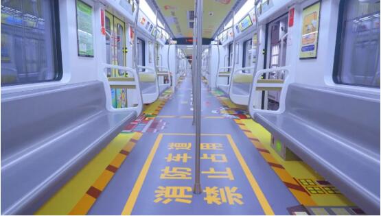 整個車廂的地面模擬真實的道路,給乘車的同時增添了不少趣味。而車門兩側則是軌道交通火災自救的漫畫指南:身上著火了怎么辦,行駛的軌道列車著火了怎么辦,逃生時什么不該帶……生動的漫畫在乘車的間隙已經普及了軌道消防安全知識。