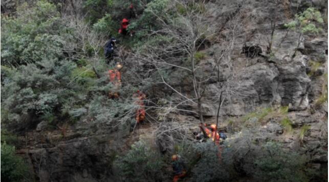中途有多處垂直陡峭區域,非常危險。消防指戰員立即使用攜帶的繩索等裝備,搭建安全通道,為兩名被困測繪員身上套上腰結,緩慢通過危險區域。全部人員于中午12點成功撤退至山腳安全地帶。