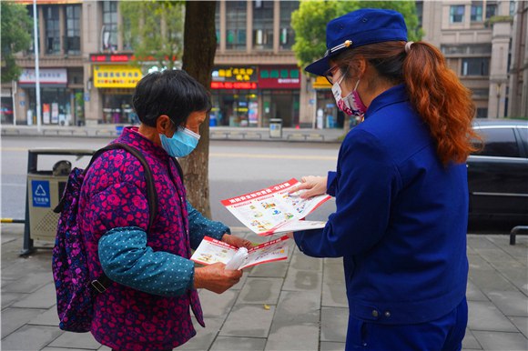 宣傳時推廣主題口罩 長壽區消防救援支隊供圖 華龍網發