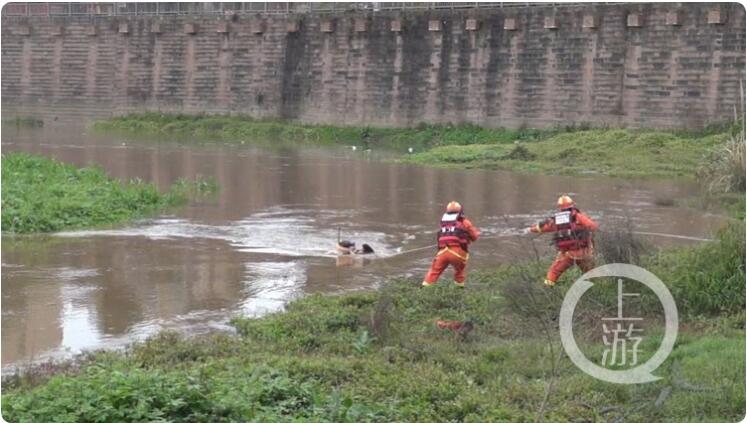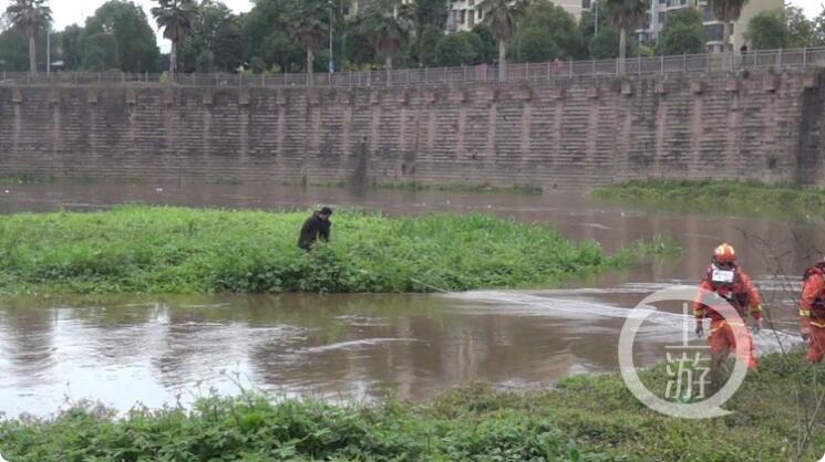 2月17日下午1點過,璧山區消防救援支隊指揮中心接到報警稱,青杠街道一人被困河中央。接到報警后,青杠消防救援站救援人員立即抵達現場,只見離岸約20米遠的一座河心孤島上,有一名中年男子被困,四周水流湍急,水位還在不斷上漲。