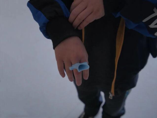 小朋友手指被筆套的裝飾圓環牢牢套住