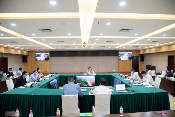 辦公會上,參會者通過無人機云直播了解項目建設動態。重慶經開區供圖