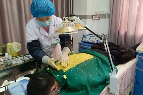 醫務人員正在為患者進行督灸治療。璧山區衛生健康委供圖