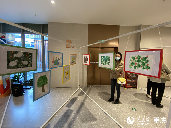 市民在參觀特需兒童繪制的美術作品。人民網 劉政寧攝