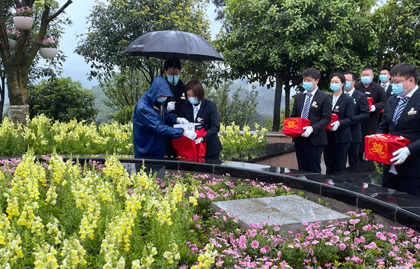 - 重慶崇興生命紀念園舉行第三屆公益集體安葬儀式。重慶崇興生命紀念園供圖 人民網重慶4月2日電 (胡虹)1日,在淅淅瀝瀝的春雨中,重慶崇興生命紀念園舉行了第三屆公益集體安葬儀式,為10余名愿意參加骨灰生態葬的民眾進行免費集體安葬!