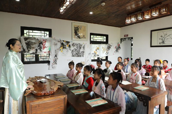 在書院里,孩子們誦讀國學經典,學習禮儀、孝道、家風知識,了解經典故事,在體驗活字印刷的過程中領悟古人智慧。