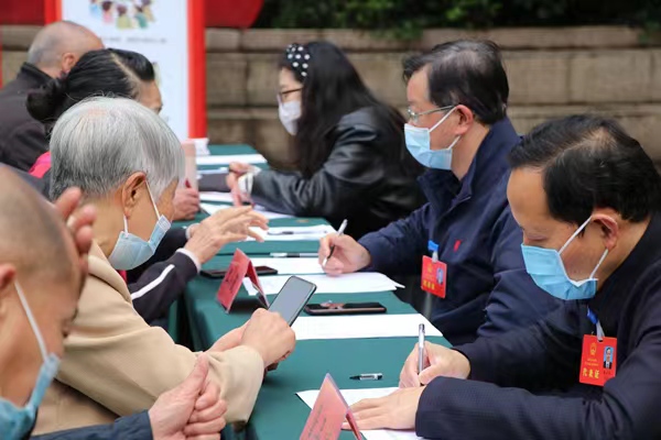 人大代表傾聽群眾意見建議。胥世鵬攝