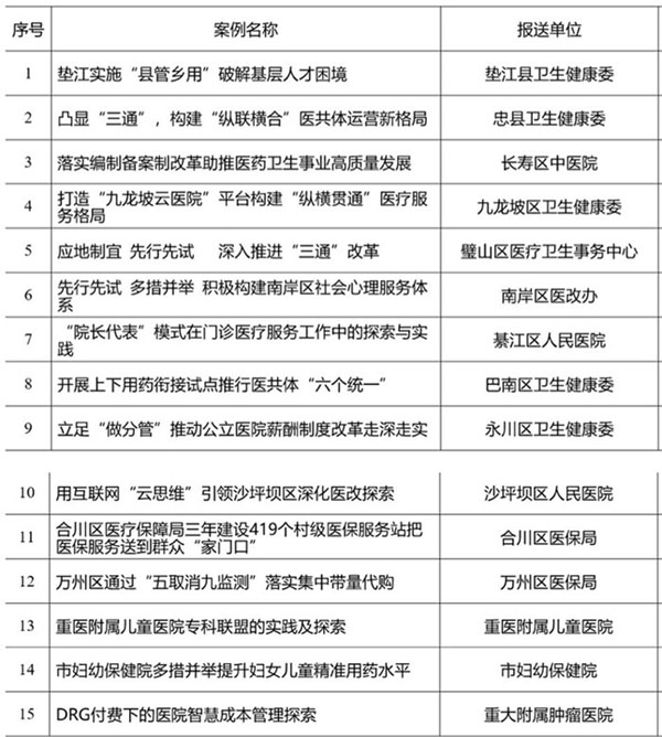 重慶2021年度深化醫改典型案例發布