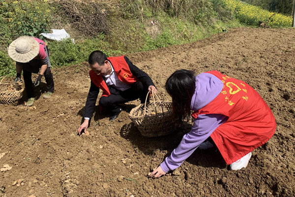 舟白街道新時代文明實踐所搶種小黃姜。黔江區委宣傳部供圖