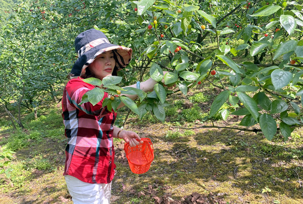 市民在櫻桃基地采摘櫻桃。羅澤美攝