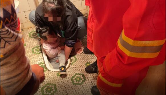 “119嗎?能不能請你們幫個忙!我兩歲的娃兒遭卡在衛生間了,我們實在弄不出來……”4月5日21時55分,重慶市永川區消防救援支隊接到市民報警稱,在永川區勝利路街道某小區,一個兩歲女孩被卡進衛生間便池里,哇哇大哭,急需救援。