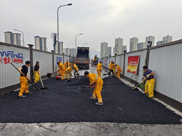 破損小路段 ,民生大問題,F場勘察后,沙坪壩區市政工程處立即著手準備,安排施工人員、機械設備和施工材料。為確保施工期間道路交通安全有序,減少施工對廣大市民交通出行影響,沙坪壩區市政工程處還積極協調交警部門于3月28日發布提示信息并封道施工。