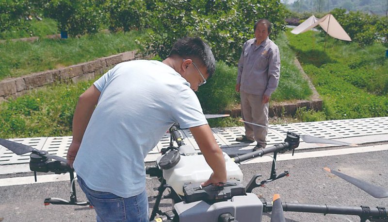 “我種柑橘快40年了,還是頭一回用上無人機,這個以前只在電視里見過!痹谇帻埓宓墓麍@里,羅光文正站在“主飛手”李博身邊,興致勃勃地學習用植保無人機噴灑農藥。