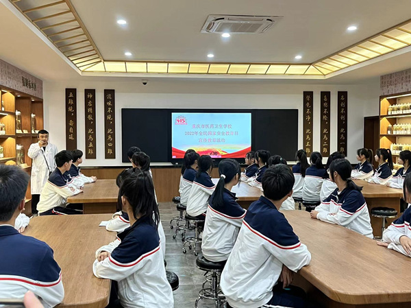15日上午,在重慶市醫藥衛生學校中藥館里,一場特別的藥品安全課堂正在進行中。來自該校藥劑專業的30多名學生正在老師的帶領下,通過播放宣傳片、展示中藥標本、體驗VR場景等形式,給學生們講解藥品安全知識,大家積極參與互動問答,圍繞藥品安全知識展開激烈討論。