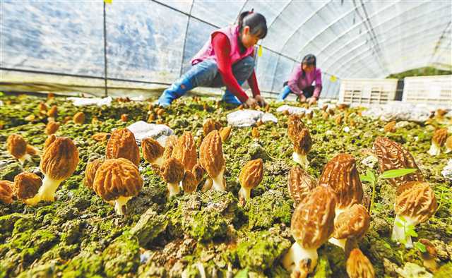 3月28日,石柱縣中益鄉,村民正在采摘羊肚菌,長勢喜人的羊肚菌給了村民極大的信心。