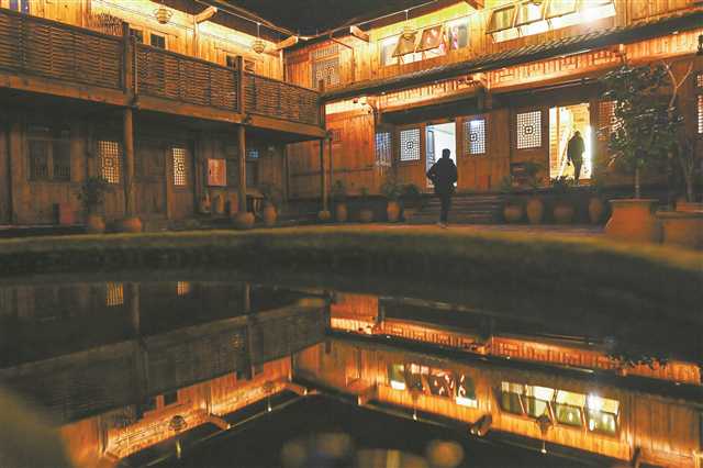 3月28日,石柱縣中益鄉大灣鄉村民宿,獨特的景觀設計與土家風情渾然一體,吸引著遠近游客前來參觀游玩。