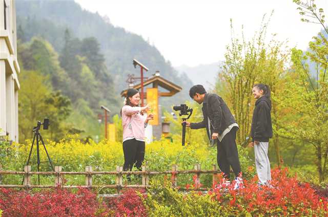 3月30日,石柱縣中益鄉,電商團隊正在直播當地美景。