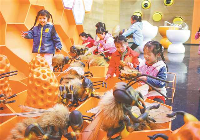 4月14日,石柱縣中益鄉蜜蜂博物館,孩子們通過蜜蜂模型了解相關知識。