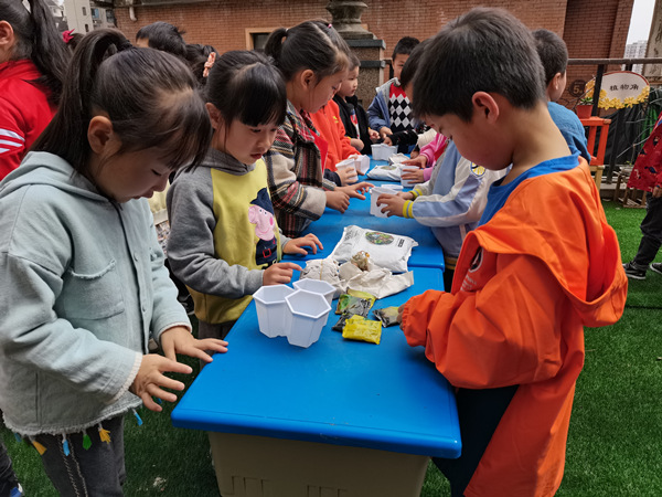 孩子們在活動中種植綠植;嘏d街道供圖