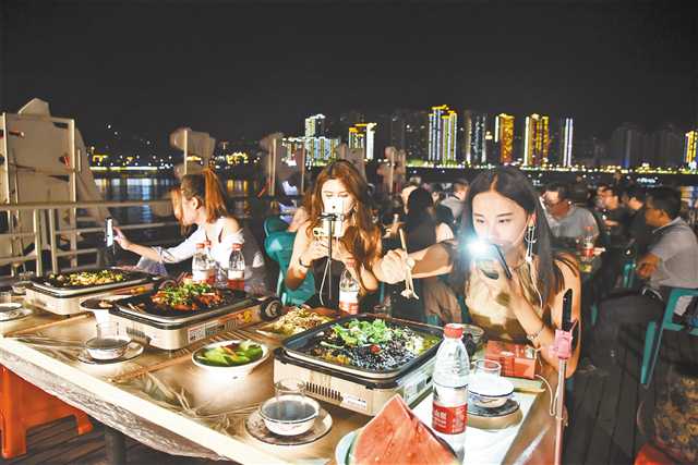 環湖游輪上直播萬州烤魚。特約攝影 冉孟軍/視覺重慶
