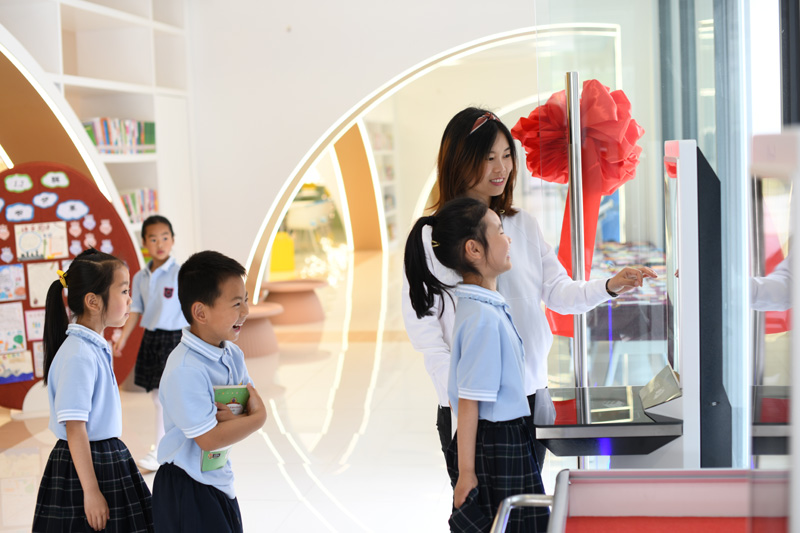 開館儀式當天,一年級2班學生丁禹彤第一個走進新館后,她被眼前的環境深深吸引,沉浸式閱讀、墨水瓶閱讀區等“互聯網+”內容更是“耳目一新”。刷臉借書、芯片記錄、“蒼蠅拍”一掃即了解書籍擺放正確區域,讓圖書管理工作更加“智慧”。