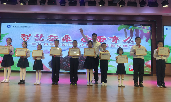 校長郭先富頒發“特色果桑管護認證執照”。融匯沙坪壩小學供圖