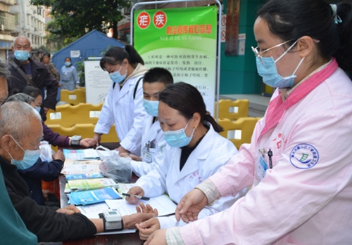 為群眾測量血壓、宣講瘧疾防治知識。璧山區衛生健康委供圖