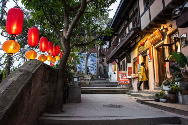 山城巷的歷史可追溯至明清時期,它起于南紀門,止于領事巷,依山而筑,沿崖而上,幾乎全由梯步組成,獨具巴渝山城地貌的美感。一路沿著山城巷漫步,西式風情的仁愛堂舊址、明清風格的長樂永康石朝門、海派石庫門風格的厚廬、南方傳統民居院落體心堂42號民居、遺址無存但精神永存的金湯門……這些塵封著厚重歷史的建筑猶如五彩繽紛的萬花筒,將山城巷過往的繁華一一展現。