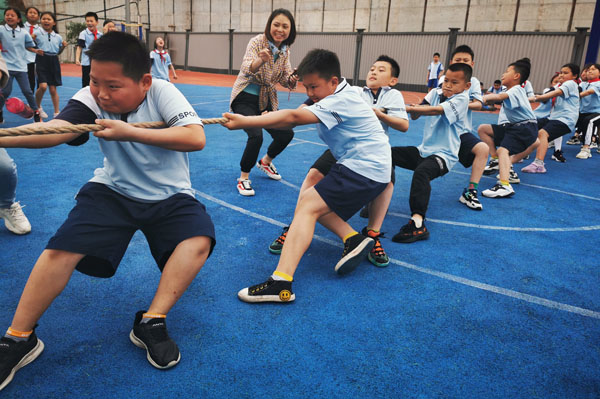 本次運動會為期一周,項目包含:袋鼠跳,迎面接力、車輪滾滾、拔河比賽。運動場上,運動員們團結拼搏、力爭上游;運動場下,拉拉隊員吶喊助威、躍躍欲試。重師附二小相關負責人表示學校堅持“以體促慧”,以運動錘煉精神,培養學生堅忍不拔的精神。(袁杰)