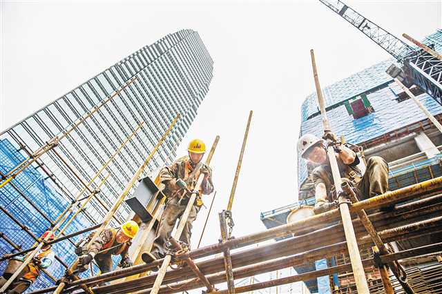 4月30日,解放碑時尚城項目,勞動者們堅守崗位,建設美麗山城。特約攝影 何超/視覺重慶