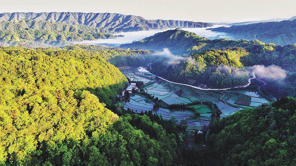 立夏時節,冷水鎮八龍村,群山沃野映襯于藍天白云之下,同純正的田園風光組構成一幅令人心曠神怡的自然畫卷。