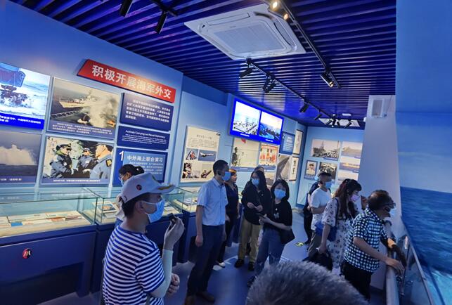 在展覽現場,通過圖畫聲像和實物展品,大家穿梭于中國海軍波瀾壯闊的歷史中,親身體驗感悟新時代日新月異的海軍國防事業發展歷程!巴ㄟ^本次活動,增強了我們的自信,堅定了‘打鐵還需自身硬’的信念,也更加增強了奮斗成就夢想的堅定信心!笔薪ǹ圃宏愌嗾f到。