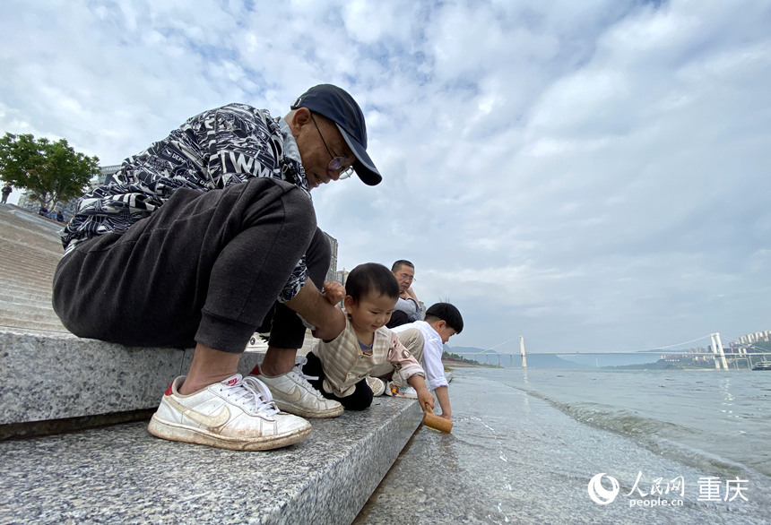 市民在長江萬州段沿岸親水游玩。人民網 劉政寧攝