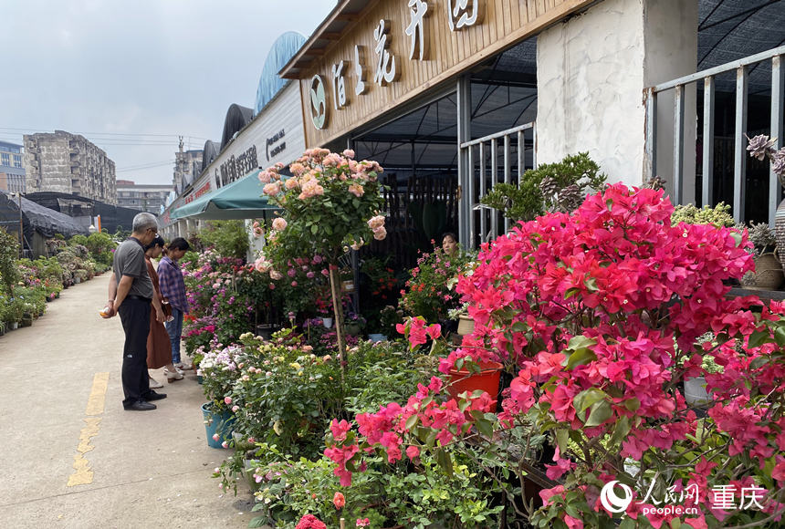 龍都街道曾經的養殖場已變身為花市。人民網 劉政寧攝