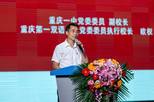 執行校長歐權為學生送上寄語。重慶第一雙語供圖