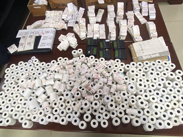 警方查獲的大量出租車發票。沙坪壩區公安分局供圖