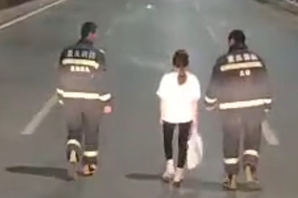 5月8日21點40分左右,重慶市北碚區消防救援支隊云豐站的消防員在出警歸隊途中,偶遇一名20歲左右的女孩獨自在公路中間“漫步”,看起來非常讓人擔心。兩名消防員隨即下車,一左一右上前陪伴并勸慰女孩,消防車則慢慢跟在后面。
