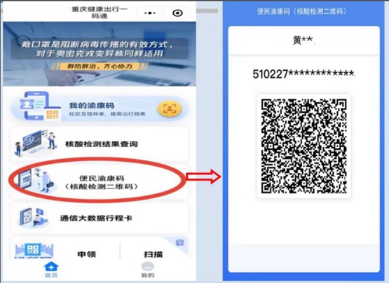 重慶市大數據發展局副局長景根元介紹,為方便沒有或者不能熟練使用智能手機的老年人、殘疾人士、學齡前兒童和中小學生等群體出行,“渝康碼”開發上線“便民渝康碼”功能。