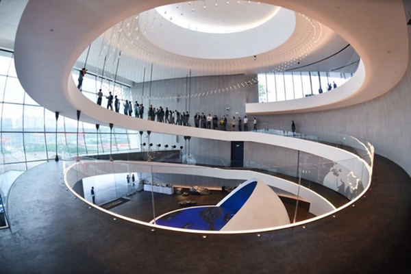 “構象方寸、筑夢金灘”,構象臺名稱取自南北朝著名詩人江淹的《雜三言 構象臺》一詩。構象臺位于長江與嘉陵江交匯下游約6公里,寸灘國際郵輪母港東側臺地,占地面積1470平方米,建筑面積4860平方米,高23.8米。項目分三層,一層為寸灘片區歷史文化和寸灘國際新城規劃展示區,二層為沉浸式體驗區,三層為多功能廳。各區域充分運用聲、光、電、機械、數碼、信息、多媒體和網絡等手段,并巧妙設計獨特的螺旋坡道,營造獨特的參觀體驗。