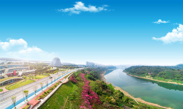擁有良好自然稟賦的悅來國際會展城,前有嘉陵江、后有淺丘地,依山傍水,很好地展現了重慶“山水之城、美麗之地”的特性。2021年底,重慶市規劃自然資源局印發了《重慶嘉陵濱江生態長廊規劃》,將打造岸線共長約138公里的嘉陵濱江生態長廊。位于兩江新區悅來國際會展城的悅來江灣和悅來濱江公園群均被規劃在生態長廊建設范圍內。