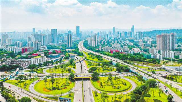 5月16日,初夏時節,人和立交在藍天白云下十分美麗。
