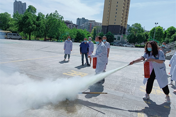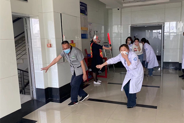 為了達到預期的培訓效果,宣傳人員還組織醫務人員開展了應急疏散演練,醫院微型消防站隊員利用醫院內部消防設施、室內消火栓等器材進行初期火災撲救,參訓人員用濕毛巾捂住口鼻,靠墻彎腰,沿疏散通道迅速有序的撤離“火場”。