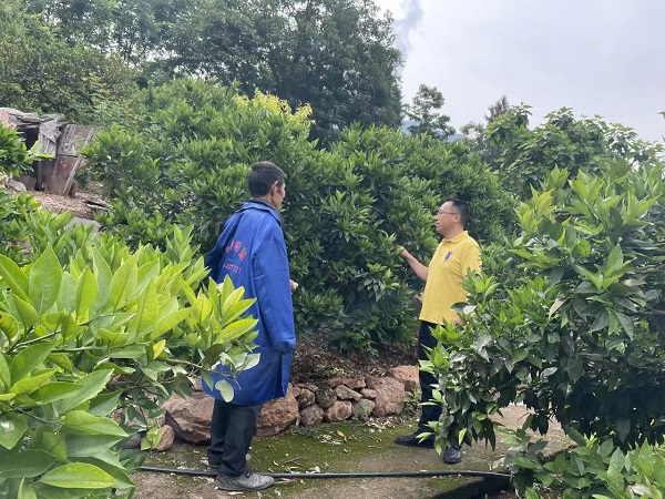 陳輝(右)查看老吳臍橙生長情況。重慶市住房城鄉建委供圖