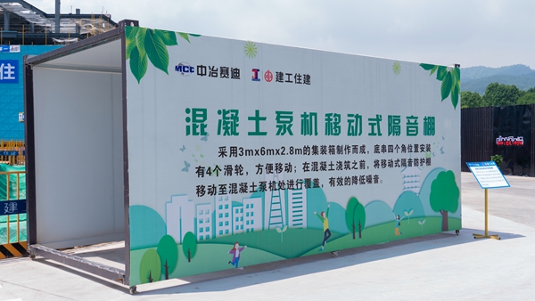 “我們從施工現場大門、圍擋、臨邊洞口防護、外立面施工、加工區防護、材料堆碼、生活區辦公區等臨設設置、起重設備管理、揚塵噪音控制、污水排放、裸土覆蓋、現場綠化美化、標識標牌、人文文化等進行了全面統籌,實現現場安全文明施工形象的規范化!敝貞c建工住宅建設有限公司副總經理劉強說,例如工人需要使用混凝土泵機,可將混凝土泵機移動式隔音防護棚移動至現場進行覆蓋,有效降低噪音;項目外立面使用藍色沖孔鋼板網進行防護,美觀的同時還能避免發生高處墜落、物體打擊等事故;施工現場栽種鮮花綠植,為施工工地增添一抹色彩。