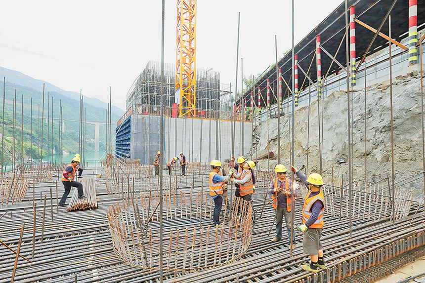 5月15日,渝湘復線高速黃草烏江特大橋施工現場,技術工人正在進行承臺施工。目前,渝湘復線高速全線建設加快推進,黃草烏江特大橋、觀音廟烏江特大橋等重點控制性工程均進入墩身施工。