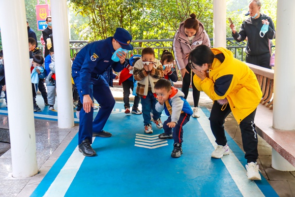 同時,基地堅持“走出去、請進來”相結合,于2021年正式建成了永川區首個消防主題公園,將防火安全常識、消防器材使用方法、火災逃生自救注意事項等消防科普內容設計融合到燈牌、座椅、步道等便民設施中,為群眾提供了集休閑娛樂、消防知識學習為一體的戶外平臺。