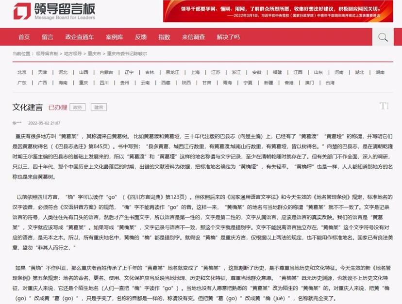 人民建議|地名有錯建議改 重慶市民政局:今后命名中統一
