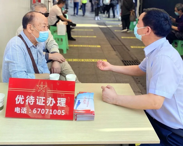 “經過審核領取到優待證后,持證人可享受國家和重慶有關政策規定的公共交通、文化旅游等方面的優待服務!狈⻊照竟ぷ魅藛T向現場的退役軍人分享優待證可享受到的一些具體服務。