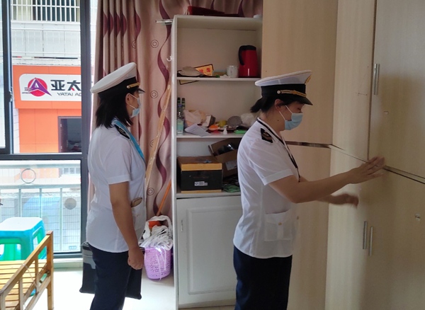 衛生監督員在住宿單位檢查。江津區衛生健康綜合行政執法支隊供圖