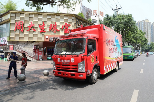 活動中,宣傳人員人員充分發揮流動宣傳車外觀醒目、機動性強,配有車載多媒體播放設備等優點,將宣傳車開入人流量集中地段,播放各類消防安全宣傳視頻,向廣大過往群眾普及消防安全知識。同時通過現場發放家庭防火宣傳資料,宣傳人員用通俗易懂的語言為過往群眾講解了發生火災時如何撲救初起火災,被困火場如何逃生,如何正確撥打“119”火警電話等消防安全常識,并對群眾提出的當前季節用火用電注意事項等相關問題進行了現場答疑。